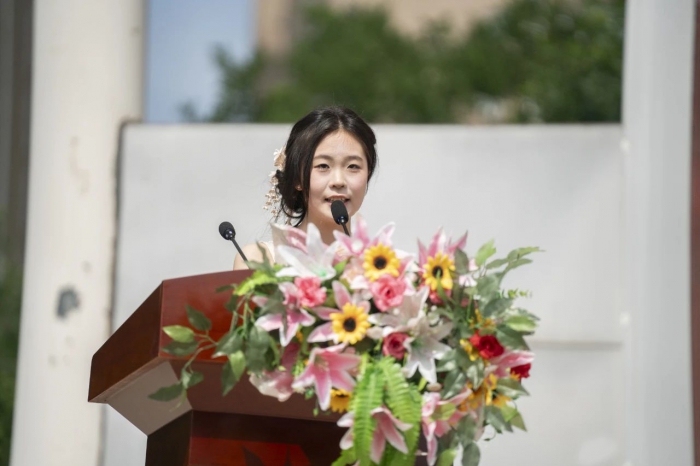 2025屆高三4班張靜怡同學(xué)代表全體畢業(yè)生發(fā)言。十八載成長(zhǎng)路,十年寒窗苦讀,感恩父母的養(yǎng)育之恩,感謝師長(zhǎng)的諄諄教誨,不負(fù)青春韶華,勇?lián)鷷r(shí)代使命,譜寫人生華章。