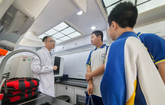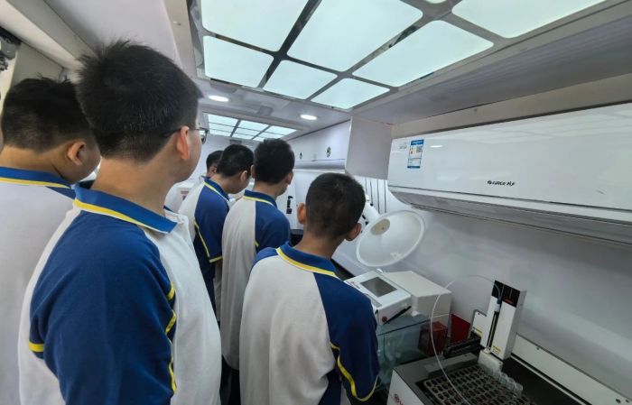 緊接著,同學(xué)們的目光被一輛特殊的車輛吸引——移動(dòng)實(shí)驗(yàn)室應(yīng)急監(jiān)測(cè)車。技術(shù)人員圍繞監(jiān)測(cè)原理與應(yīng)用場(chǎng)景展開講解,深入淺出地介紹它在突發(fā)環(huán)境事件中的“神兵”作用。車內(nèi)陳列的各類先進(jìn)監(jiān)測(cè)設(shè)備,讓同學(xué)們直觀感受到:那些看不見的環(huán)境安全防線,正是構(gòu)筑起民生保障的堅(jiān)實(shí)屏障。