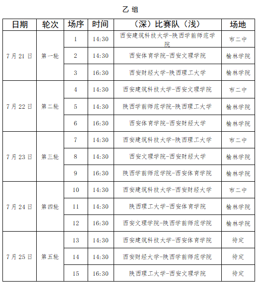 陜西省十七運(yùn)足球項(xiàng)目可免費(fèi)觀賽,賽程公布!7月19日,陜西省第十七屆運(yùn)動(dòng)會(huì)(簡(jiǎn)稱“省運(yùn)會(huì)”)第一階段比賽正式開賽。本屆省運(yùn)會(huì)共設(shè)置28個(gè)大項(xiàng),766個(gè)小項(xiàng),其中足球競(jìng)賽項(xiàng)目和場(chǎng)次原則上面向市民公眾免費(fèi)開放觀賽,公眾憑身份證按照防疫和安保要求有序入場(chǎng)。各競(jìng)賽場(chǎng)館按照防疫要求設(shè)置當(dāng)日流量閡值上限,限流入場(chǎng)、額滿即止。觀賽人員合理安排觀賽時(shí)間、場(chǎng)次和交通方式,提前1小時(shí)抵達(dá)場(chǎng)館,開賽15分鐘后不得入場(chǎng)。 大學(xué)生(男子)組競(jìng)賽日程