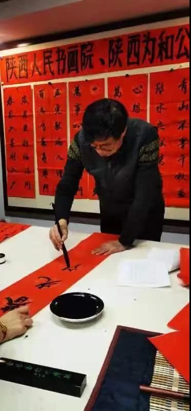 陜西人民書畫院為企業(yè)員工送福字寫春聯(lián)