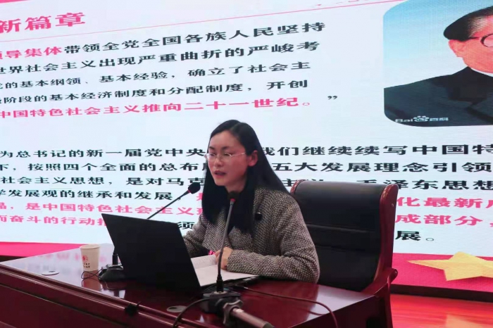 韓英從新中國(guó)社會(huì)主義發(fā)展史的五個(gè)方面進(jìn)行解讀,她列舉豐富的史實(shí),結(jié)合自己對(duì)黨史研究的認(rèn)識(shí),做了精辟講解。韓老師的講解既富理論性,又通俗易懂,同時(shí)注重用黨的奮斗歷程和偉大成就激勵(lì)黨員教師,對(duì)大家認(rèn)識(shí)黨的歷史、加強(qiáng)黨史知識(shí)學(xué)習(xí)具有很強(qiáng)的理論指導(dǎo)作用。