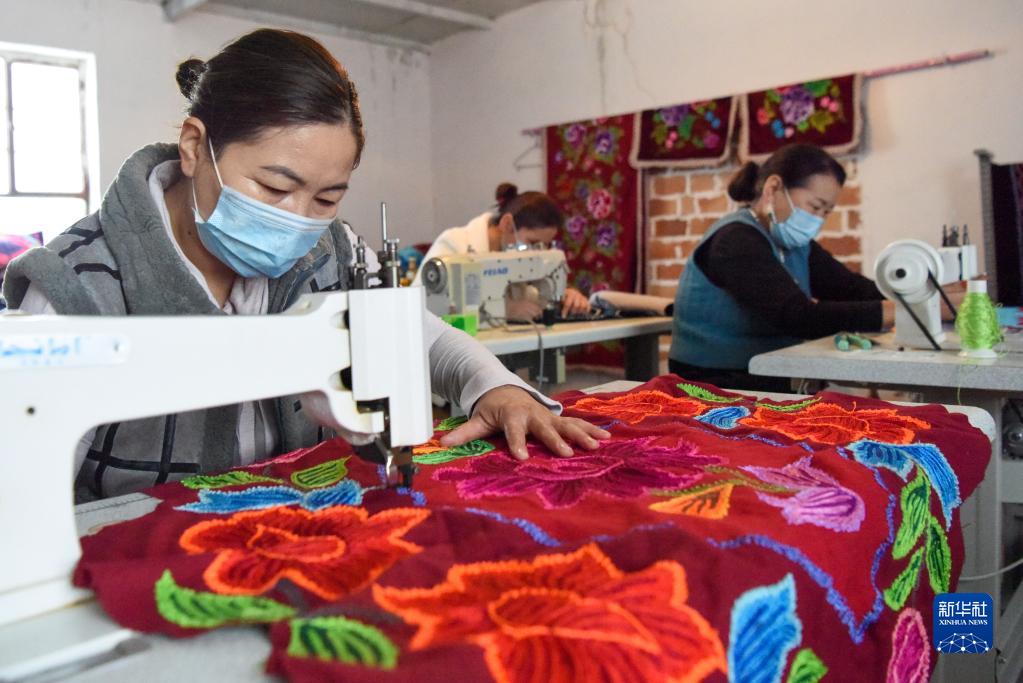 在新疆吉木薩爾縣白泉村刺繡專業(yè)合作社,繡娘在制作哈薩克族刺繡(2021年1月23日攝)。新華社記者 丁磊 攝 2014年4月,習(xí)近平總書記來到喀什地區(qū)疏附縣阿亞格曼干村考察,走進(jìn)村民阿卜都克尤木·肉孜家,同鄉(xiāng)親們共話黨中央惠民政策的貫徹落實。 “從脫貧攻堅到接續(xù)鄉(xiāng)村振興,這些年,黨的好政策就像甜蜜的葡萄,一串接一串。”阿卜都克尤木說,“村里設(shè)立了學(xué)習(xí)微課堂,一有好政策,第一時間大家就能看得到、聽得懂。過去我們這里是貧困村,現(xiàn)在大家搞養(yǎng)殖、搞苗木種植,人人有事干、有錢掙,日子越過越紅火。” 阿亞格曼干村的變化,是新疆經(jīng)濟(jì)社會發(fā)展和民生改善的縮影。