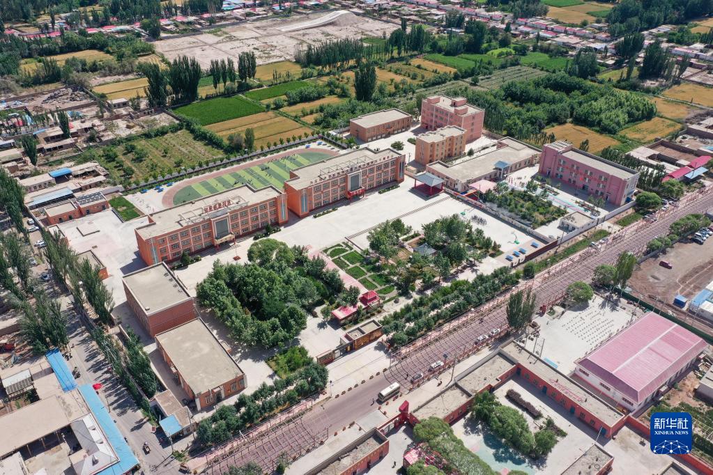 這是新疆喀什地區(qū)疏附縣托克扎克鎮(zhèn)中心小學(xué)(2022年6月10日攝,無人機(jī)照片)。新華社記者 丁磊 攝 “打造內(nèi)陸開放和沿邊開放的高地” 大漠茫茫、駝鈴聲聲。新疆,承載古絲綢之路的歷史榮光,也在新時代迎來嶄新的歷史機(jī)遇。 在新疆考察期間,習(xí)近平總書記強(qiáng)調(diào),“新疆在建設(shè)絲綢之路經(jīng)濟(jì)帶中具有不可替代的地位和作用”,要“把自身的區(qū)域性對外開放戰(zhàn)略融入國家絲綢之路經(jīng)濟(jì)帶建設(shè)、向西開放的總體布局中去”。在第三次中央新疆工作座談會上,習(xí)近平總書記提出“打造內(nèi)陸開放和沿邊開放的高地”要求。 遵循習(xí)近平總書記指引,近年來,新疆加快推進(jìn)絲綢之路經(jīng)濟(jì)帶核心區(qū)高質(zhì)量發(fā)展,構(gòu)建內(nèi)外聯(lián)動、東西雙向互濟(jì)的高水平對外開放格局。