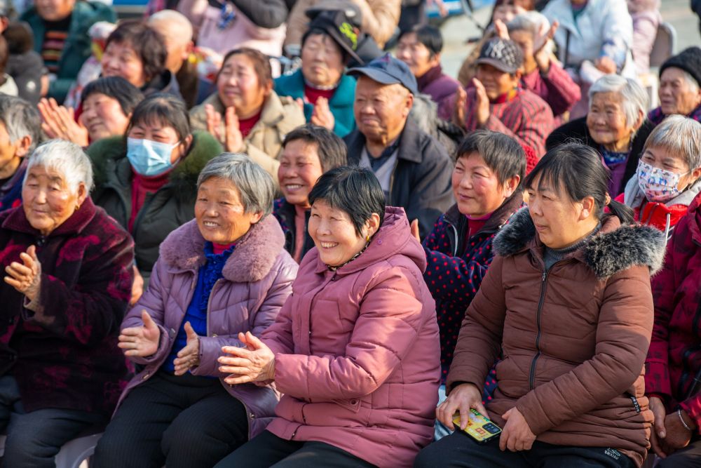 2024年2月11日,江蘇省海安市胡集街道園莊村村民在“村晚”上欣賞文藝節(jié)目。新華社發(fā)(翟慧勇攝) “村晚”熱鬧紅火,讓江蘇省徐州市賈汪區(qū)岐山村黨總支書記楊永代表感嘆“文化味兒一年比一年濃”。 “實(shí)施鄉(xiāng)村振興戰(zhàn)略要物質(zhì)文明和精神文明一起抓,讓村民的腰包更鼓、精神更富!睏钣佬判臐M滿。 以文興業(yè),以文聚力。