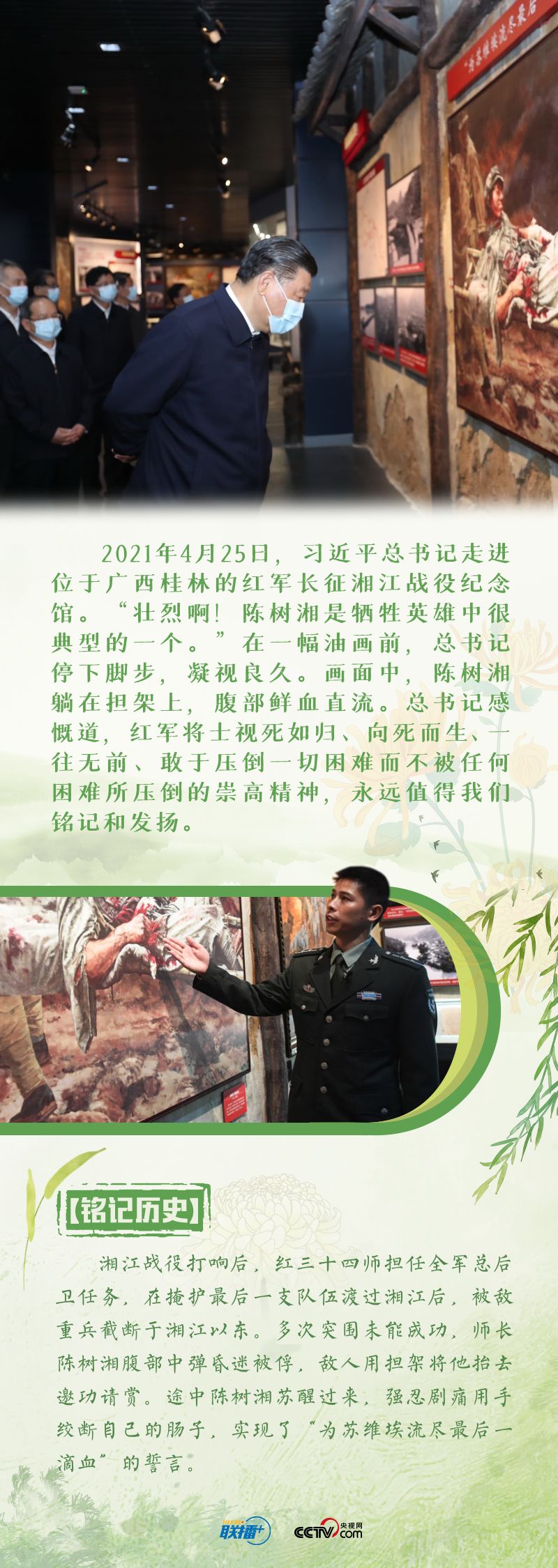 最閃亮的坐標(biāo)丨天地英雄氣 跟著總書記賡續(xù)紅色血脈丨聯(lián)播+丨 青山處處埋忠骨,清明時節(jié)寄哀思。據(jù)不完全統(tǒng)計,近代以來,我國已有約2000萬名烈士為國捐軀,其中有名有姓的只有196萬名。 “一個有希望的民族不能沒有英雄,一個有前途的國家不能沒有先鋒。包括抗戰(zhàn)英雄在內(nèi)的一切民族英雄,都是中華民族的脊梁,他們的事跡和精神都是激勵我們前行的強(qiáng)大力量! 井岡山革命烈士陵園、紅軍長征會師紀(jì)念碑、華東革命烈士陵園……在一次次調(diào)研考察途中,習(xí)近平總書記每到對我們黨具有重大歷史意義的革命圣地、紅色舊址、革命歷史紀(jì)念場所,總不忘瞻仰遺址、追思忠魂,重溫那一段段崢嶸歲月。 在2022年清明節(jié)來臨之際,央視網(wǎng)《聯(lián)播+》特推出海報,邀您一起跟隨總書記的腳步,銘記歷史,緬懷英烈。
