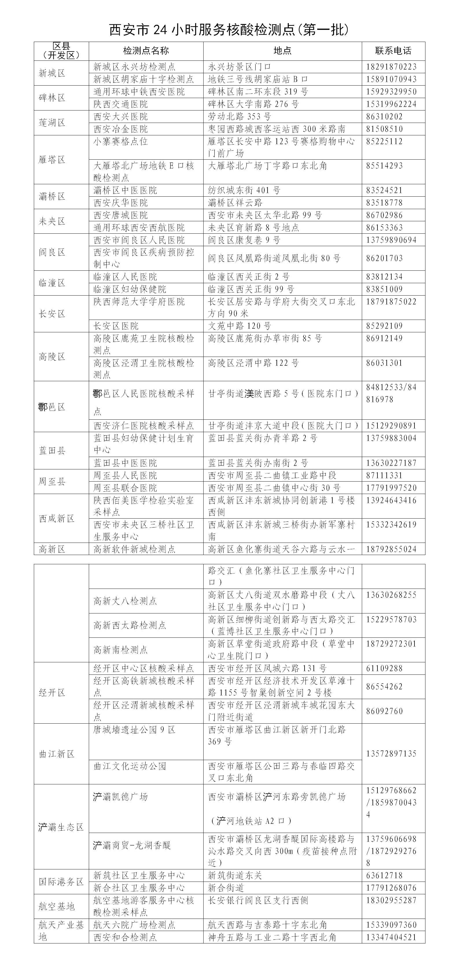 最新通告!西安市24小時(shí)服務(wù)核酸檢測點(diǎn)(第一批)公布為有效發(fā)現(xiàn)和全面控制傳染源頭,及時(shí)阻斷新冠肺炎傳播,現(xiàn)就西安市涉疫風(fēng)險(xiǎn)人群開展核酸檢測工作通告如下: 一、接到西安市疫情防控指揮部提示短信后,第一時(shí)間主動(dòng)向所在社區(qū)報(bào)告(住店旅客可由酒店報(bào)告對應(yīng)社區(qū))。在做好個(gè)人防護(hù)的前提下,立即就近到指定的24小時(shí)服務(wù)核酸檢測點(diǎn)(下附檢測點(diǎn)名單)免費(fèi)做1次核酸檢測。 二、在核酸檢測結(jié)果出來之前,自覺做到不聚集、少流動(dòng),與他人保持安全距離,不乘坐公共交通工具,不到公共場所,出現(xiàn)發(fā)熱、干咳、乏力等異常情況時(shí)要佩戴口罩及時(shí)就醫(yī)。 三、接到短信提示后24小時(shí)內(nèi)未做核酸的人員其“一碼通”將被標(biāo)為黃碼,待核酸檢測陰性后轉(zhuǎn)綠碼。有特殊情況可向?qū)俚匾咔榉揽刂笓]部或12345熱線咨詢。 本通告自發(fā)布之日起施行,本輪疫情結(jié)束后廢止。 市疫情防控指揮部辦公室 2021年10月20日
