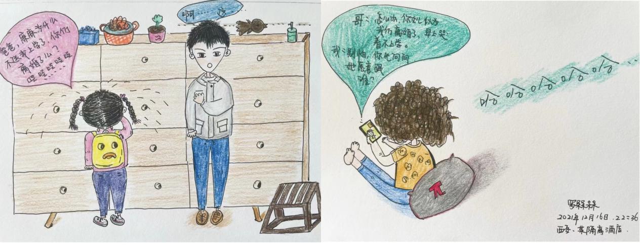 警嫂所畫漫畫,名為“孩子都以為咱倆離婚了” “孩子們自己照顧自己多一點,大的照顧小的!彪p警家庭的王星,家中有兩個孩子,小的才6歲。夫妻倆都在防疫一線,家人時刻牽動著一線執(zhí)勤民警的心,“還有同事說,她老公因為執(zhí)勤很久沒回家,孩子都以為他倆離婚了!毕裢跣沁@樣的情況,在警察隊伍里還有很多。 身為人民警察,他們也許無法扮演好家庭的角色,但無論是日常執(zhí)勤,還是特殊時期的防疫工作,頭戴警帽、身著藍色警服的他們從未缺席,“一個集體就是一股繩,得牢牢擰著,擔(dān)著責(zé)任,肩負(fù)著使命!痹诳箵粢咔榈年P(guān)鍵時期,他們以“疫情不退,警察不退”的決心和信心,堅守疫情防控的最前沿,用逆行的堅定背影,為群眾筑起一道堅實有力的屏障。 把群眾放心里 心系人民、植根人民、服務(wù)人民