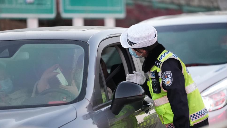西安交警曲江大隊航天中隊民警朱李正在執(zhí)勤。 “韋曲收費站每天進出1000余輛車,其中還有不少冷鏈運輸車輛,我們更要耐心細致做好檢查!笔召M站前,交警朱李和她的戰(zhàn)友們穿梭在車流中,查驗司乘人員相關(guān)證件,“我們在這里就是要當(dāng)好守門員,從源頭上切斷疫情蔓延! 在警察隊伍中,還有一些“雙警”家庭,面對一級響應(yīng)24小時備勤,夫妻雙方都需趕赴抗疫一線,孩子只能托付給家中老人或者朋友代為看顧。