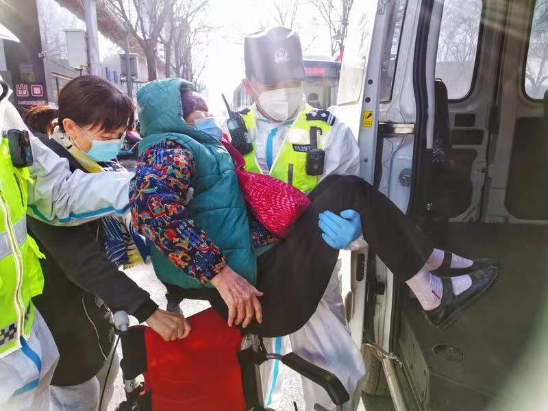 民警下沉社區(qū)協(xié)助防疫工作。 “人民警察真的是為人民,太感謝了!”2021年12月29日,西安公安交警在執(zhí)勤時接群眾求助,稱其母親因病需前往醫(yī)院,因無交通工具,無法到達醫(yī)院。核查相關(guān)證件后,民警用警車將其送往醫(yī)院進行治療。因患者年齡較大、行走不便,加之現(xiàn)場的警車較高,民警便采取“公主抱”的形式,將老人抱上了警車,并在執(zhí)勤結(jié)束后與其家屬聯(lián)系,前往醫(yī)院接她們回家。