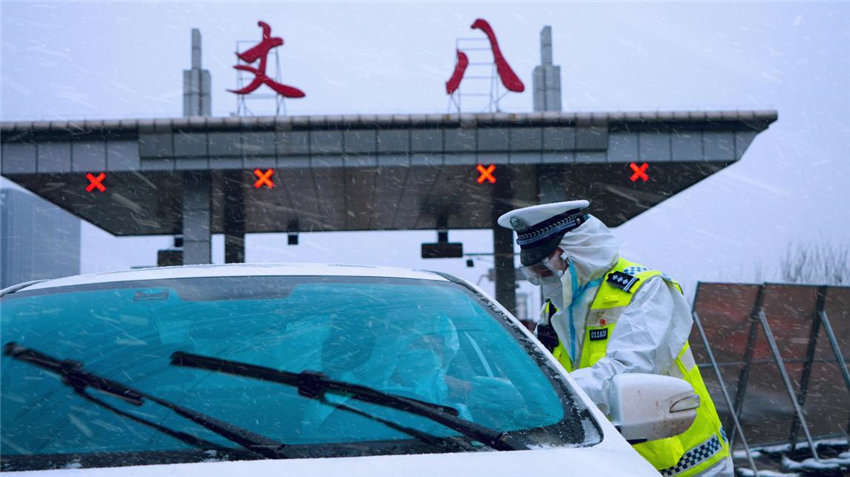 臨退休民警朱永強雪天值守抗疫一線。 面對自己40年交警生涯中的最后30天,朱永強說“共產(chǎn)黨員的最后一班崗,不為轟轟烈烈,只求始終如一。疫情面前,我沒退,就是要對得起守護了40年的城市,對得起警服,對得起自己!边@種始終如一,不畏艱險的信念,朱永強以身作則,也傳遞給了下一代新警。