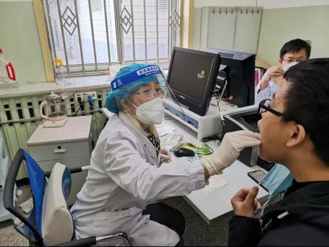 劉秋月為居民做核酸采樣。西安交大第一附屬醫(yī)院供圖 劉秋月所在的這支特殊的志愿者團隊被稱為“夕陽紅”核酸采樣隊,二十四位成員都是醫(yī)院的退休醫(yī)務(wù)工作者,平時在醫(yī)院家屬院和國際港務(wù)區(qū)進行定點核酸采集工作。 此外,另一支由西安交大第一附屬醫(yī)院的3名退休專家、1名退休護士組成的醫(yī)療團隊,奔赴西安交通大學(xué)興慶校區(qū)校醫(yī)院,為全校師生提供了醫(yī)療保障!皫蛯W(xué)生解決一些呼吸道感染、外傷、腸胃炎等問題,篩查和轉(zhuǎn)運發(fā)熱學(xué)生等是我們每天的工作!70歲的呼吸內(nèi)科專家陳小燕介紹道。 除了退休專家,醫(yī)院在職職工與來自各地的規(guī)培醫(yī)師、醫(yī)學(xué)生們,也一直奮戰(zhàn)在抗疫一線。 超聲科規(guī)培醫(yī)師白曉旭從院黨委副書記馮廣林手里接過隊旗時鄭重表示:“一定不負一附院培育,不畏艱險,不辱使命,嚴格規(guī)范操作,堅決完成任務(wù)!眮碜晕鞑匕⒗锏貐^(qū)委派的2名住培醫(yī)師晉美加措和米瑪占堆也毅然加入到了這場抗疫阻擊戰(zhàn)中。