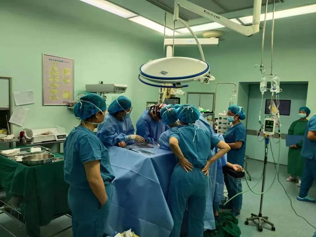劉女士正在進行手術(shù)。西安市中心醫(yī)院供圖 經(jīng)過治療后,劉女士的左側(cè)肢體依舊不能動。柴源與患者家屬緊急協(xié)商后,又將劉女士送往介入室,在局麻下行“全腦血管造影術(shù)”,隨后行“右側(cè)大腦中動脈閉塞取栓術(shù)”,最后成功為患者取出血栓,暢通血管。 手術(shù)后,劉女士被送入神經(jīng)外科重癥監(jiān)護室病房,密切監(jiān)護觀察治療。目前,劉女士已恢復(fù)意識,且左側(cè)肢體可以遵囑活動,病情平穩(wěn)。