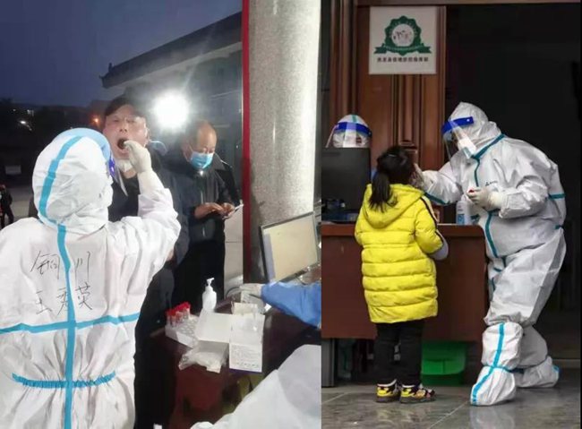 醫(yī)護人員為桑女士做術(shù)前準備。西北婦女兒童醫(yī)院供圖 桑女士非常緊張,急診科接診醫(yī)生一邊完善術(shù)前準備、一邊安撫和鼓勵她,考慮到桑女士短期內(nèi)不能經(jīng)陰道分娩,如果繼續(xù)等待,胎兒隨時可能胎死宮內(nèi),劉星當(dāng)即決定:剖宮產(chǎn)終止妊娠,以挽救胎兒的生命。所幸手術(shù)及時,最后,男嬰順利出生,母子平安。 生命的誕生總是會帶給人希望,這只是西北婦女兒童醫(yī)院產(chǎn)科醫(yī)護人員忙碌工作的一個縮影。自西安市本次疫情發(fā)生以來,西北婦女兒童醫(yī)院全體產(chǎn)科醫(yī)護人員一直堅守崗位,守護著廣大孕產(chǎn)婦的安全。 ——最近,疫情防控之下,西安市開展了多輪全員核酸檢測,這也是快速、精準發(fā)現(xiàn)潛在傳染源,采取針對性管控措施,阻斷疫情擴散的必要之舉。 然而,一座千萬級人口的大市,要做到“不漏一人、不落一戶”,全員盡檢,需要相當(dāng)?shù)娜藛T隊伍作為保障。當(dāng)核酸檢測成為“剛需”,西安交大第一附屬醫(yī)院義不容辭承擔(dān)起了這份“志愿”工作。 “只要有需要,我們隨時都能上崗!” 西安交大第一附屬醫(yī)院的數(shù)十名退休醫(yī)務(wù)工作者關(guān)鍵時刻重披白衣,化身為堅守城市安全的抗疫戰(zhàn)士。 2021年退休的劉秋月已經(jīng)持續(xù)工作了14天,從早上8點多,一直進行核酸采樣到下午1點多,有時忙碌起來甚至?xí)酵砩?0點多,每天核酸采樣近2000人。